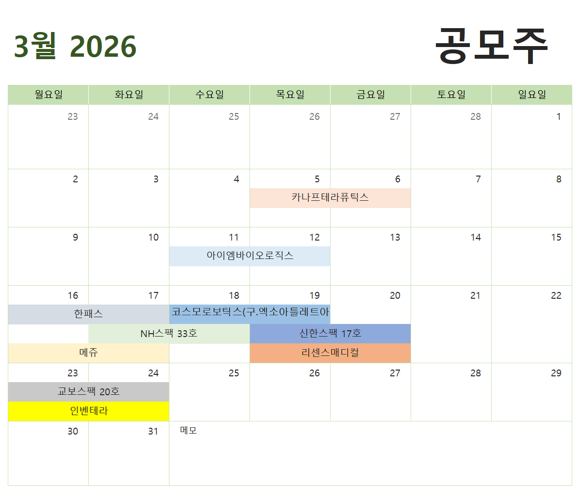 여러분도 저와 함께 3월 공모주 일정을 미리 확인하고, 함께 공부해 봐요! 물론 일정은 변동될 수 있으니,